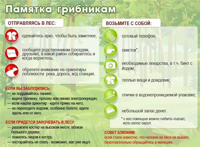 Грибной сезон в самом разгаре, но немногие любители тихой охоты владеют хотя бы элементарными навыками ориентирования на местности. Более того, большинство граждан выезжают за грибами в незнакомый лес, где ранее ни разу не были. Чтобы поход за грибами не обернулся для вас поисково-спасательной операцией, отдел надзорной деятельности и профилактической работы Тосненского района рекомендует соблюдать следующие простые правила поведения в лесу:
