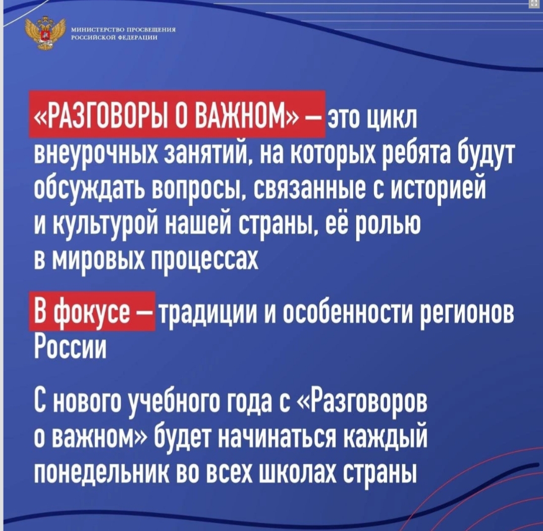 Минпросвещения России с 1 сентября 2022 года запускает в российских школах масштабный проект – «Разговор о важном»