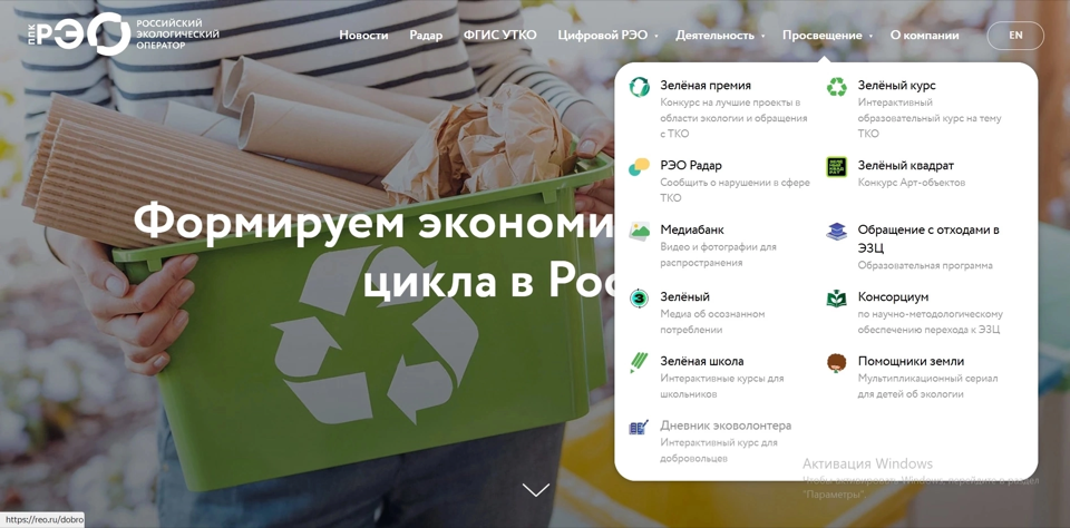 — видеокурс на тему ТКО для работников отрасли, госслужащих и студентов профильных программ вузов. Ссылка на материалы: reo.ru/green-course - интерактивный курс «Дневник эковолонтера»