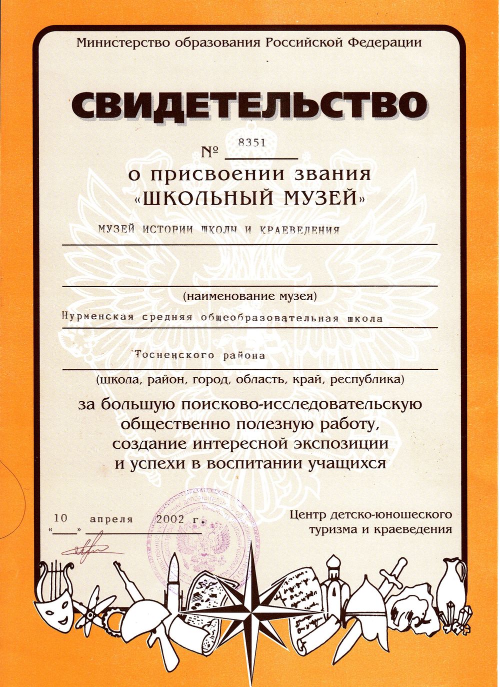 Положение о школьном музее МКОУ «ООШ Нурменский ЦО»
