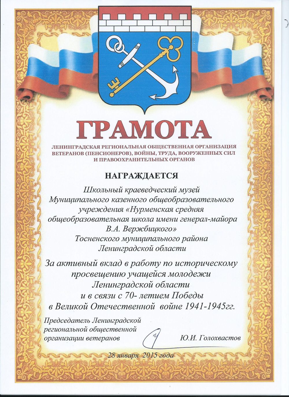 1. Военно-патриотическое воспитание. Его центром стала мемориальная комната командира 364 Тосненской Краснознаменной стрелковой дивизии генерал-майора В.А. Вержбицкого. Экспозиция отражает жизненный и боевой путь Виктора Антоновича Вержбицкого, войну на территории края, его связь с коллективом школы.